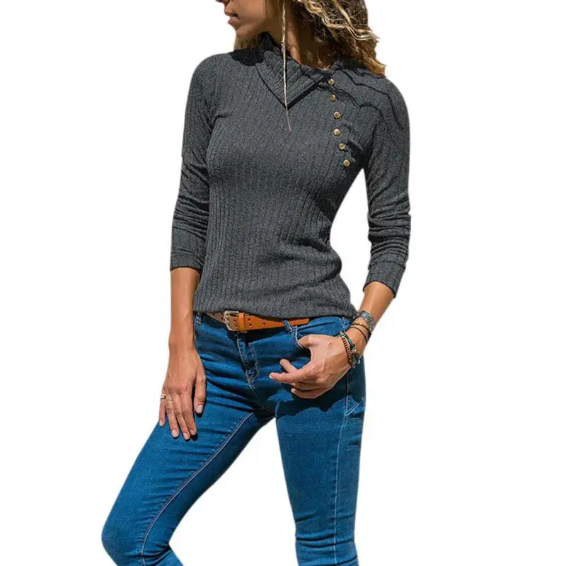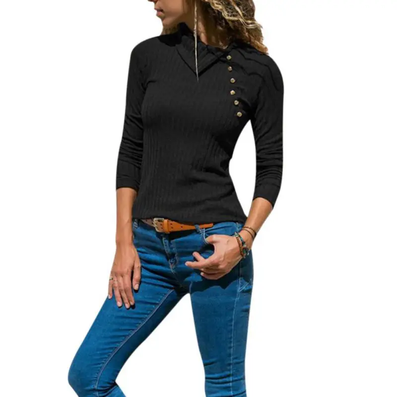 Cashback 2018 Herfst en Winter Nieuwe mode schuine kraag pit gesp lange mouw blouse trui mooie vrouw F1