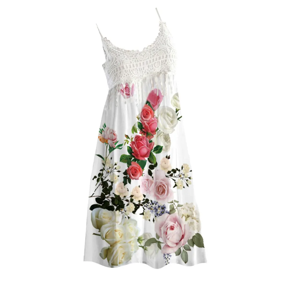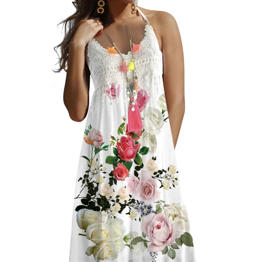 Promo 2019 Women's Sexy Boho Lace Vintage flowers Sleeveless Beach Print Summer dress Faldas Mujer vestid