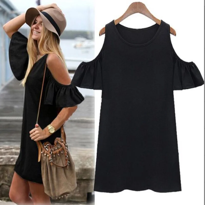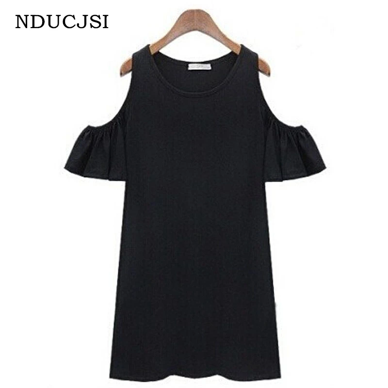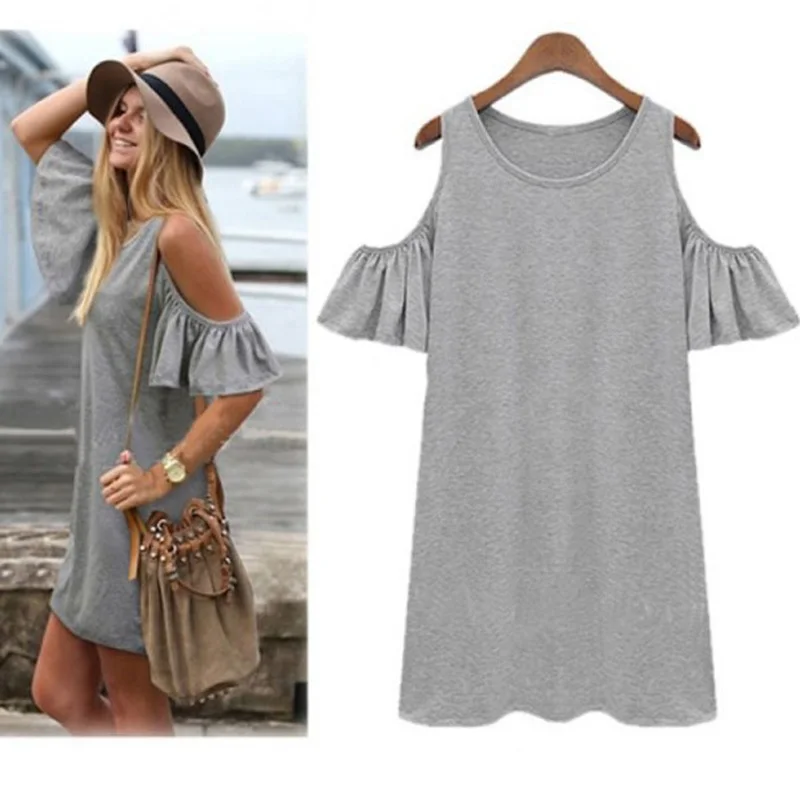 Purchase NDUCJSI Mini Dress Casual Summer Loose Ruffles Sleeve New O-Neck Beach 5XL Plus Size Grey Black Sho