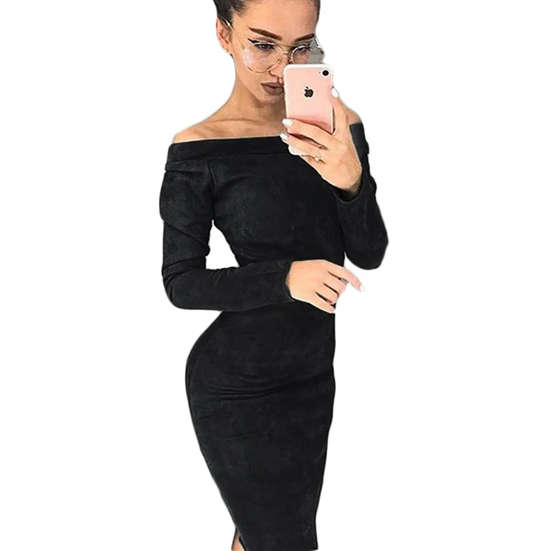 Best Offer Office Lady Dress Slim Sheath Bodycon Party Dress Knee Length Autumn Dress Solid Color Slash Neck L | Pantyhose For Women Tights Solid Color Tights Whole Seamless High Stretch Sexy Sheer Stockings Tight Female Collant Slim Tights