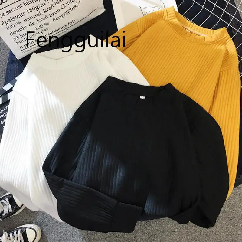 Expensive Trui Vrouwen 2020 Herfst Winter Nieuwe Effen Kleur Basis Trui Lange Mouw O Nek Mode Losse Harajuku