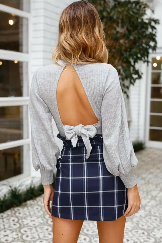 Premium Vrouwen Sexy Lange Mouwen Backless Boog Gebreide Truien Winter Sexy Hollow Out Backless Truien