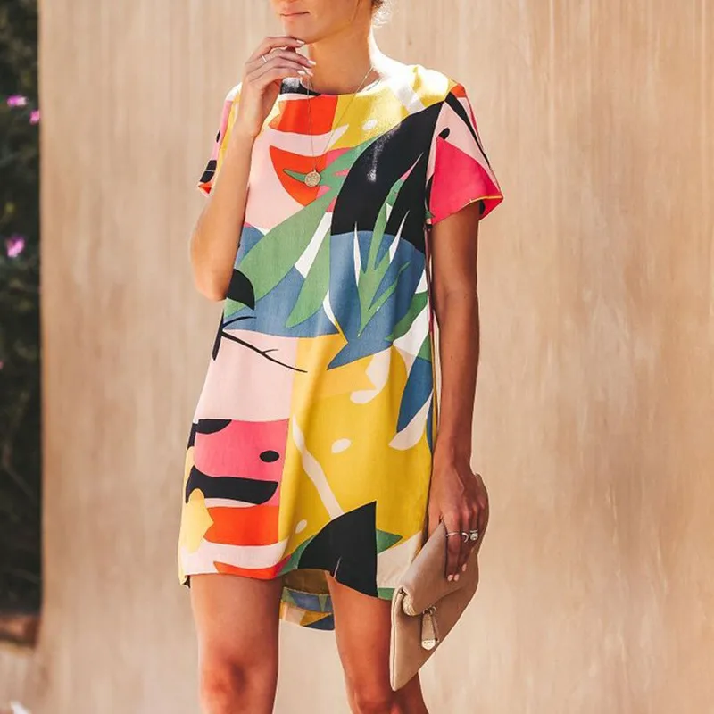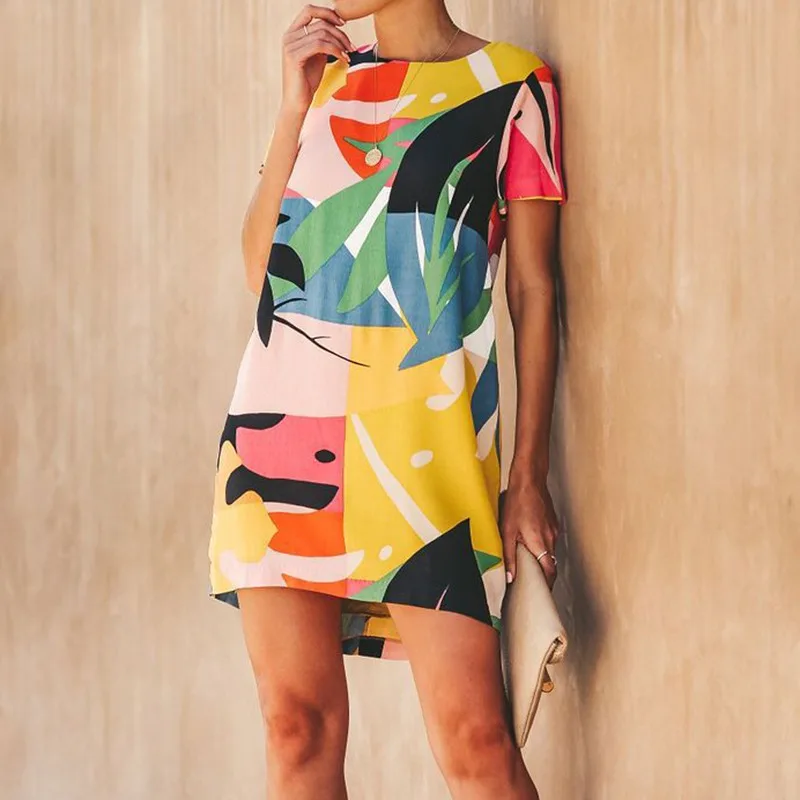 Offer 2019 Novel Design Summer Dress Round Neck Short-sleeved Geometric Pattern Dress Fashion Casual Stra