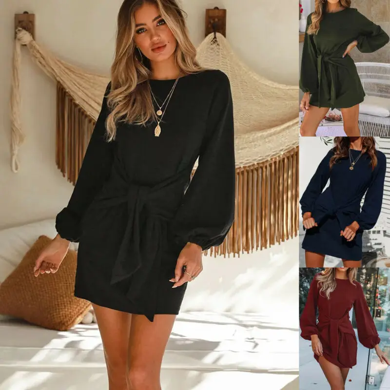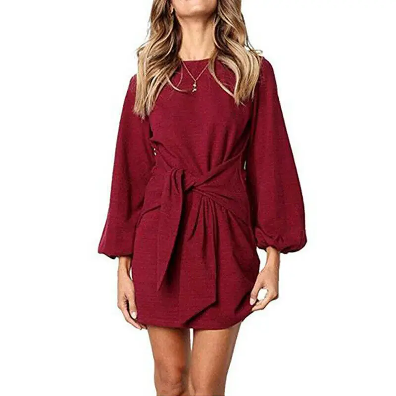 Pre-owned Autumn Sexy Women Bandage Bodycon Dress Slim Long Sleeve Casual Short Mini Dress Party Clubwear Cre