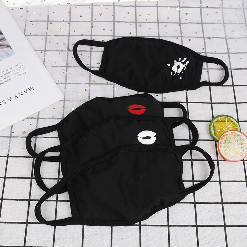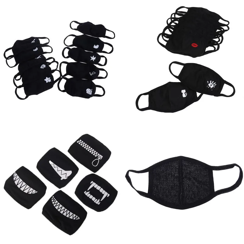 - 1PCS Black Unisex Cartoon Masks Black Cotton Half Face Mask Funny Teeth Letter Mouth Anime Cotton Dustproof Mouth Face Mask