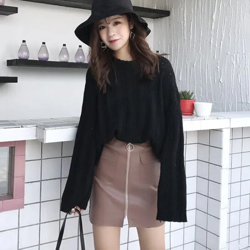 Discount Vrouwen Herfst Winter Mode Effen Kleur Truien Vintage Stijl Casual Ronde Hals Met Lange mouwen Gebr