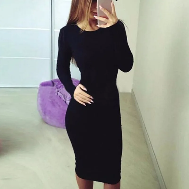 Offer women Women's Elegant Fashion Design Casual O-Neck Long Sleeve Slim Fitting Body-con Cocktail Party