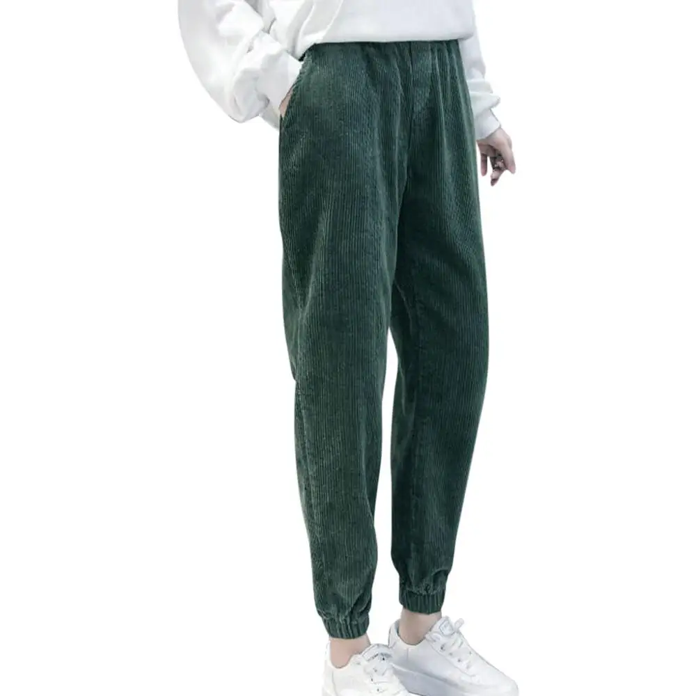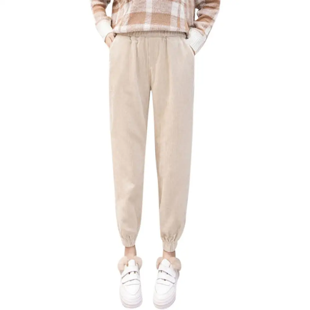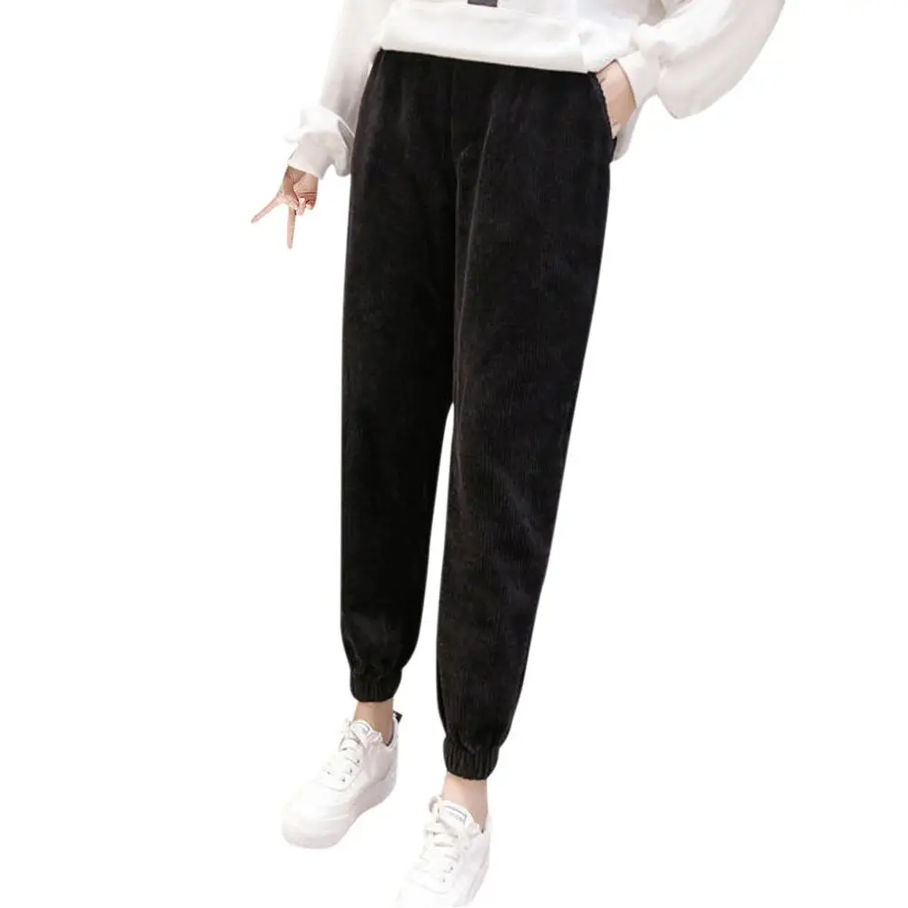 - Women Casual Loose Solid Elastic Waist Harem Corduroy Pocket Trousers 2020 Fashion Trends Girls Daily Pencil Pants H1
