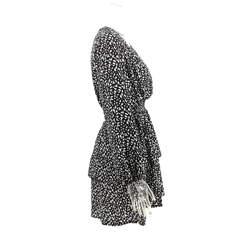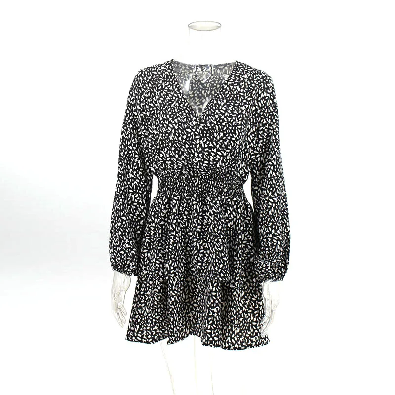 Luxury Big Promotion Ladies Fashion Floral Middle Waist Slim Fit Dresses Female Casual V-Neck Long Sleeve
