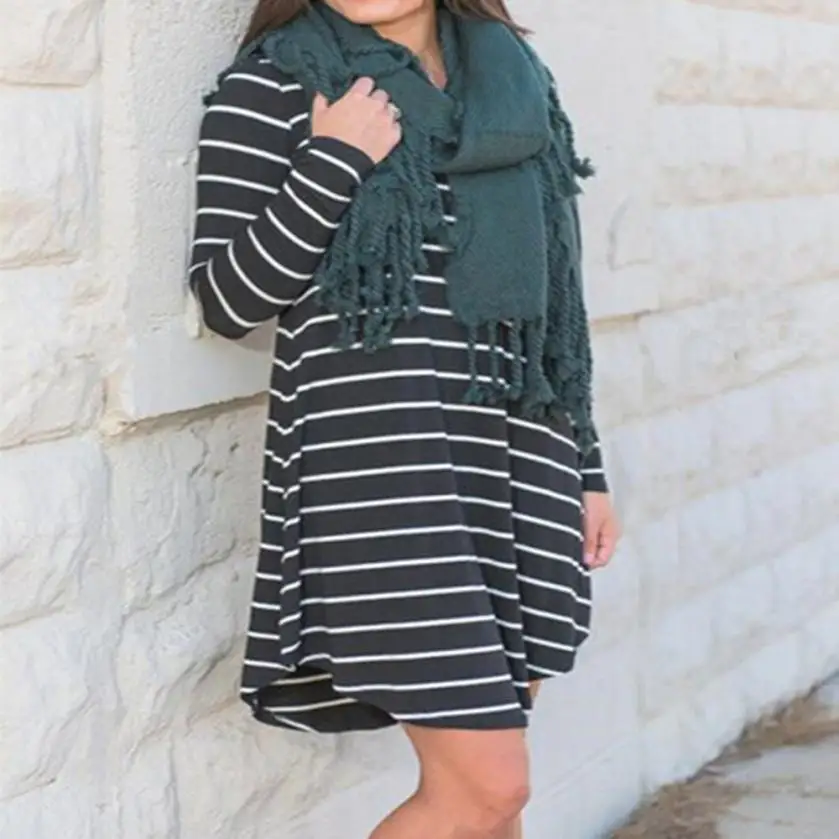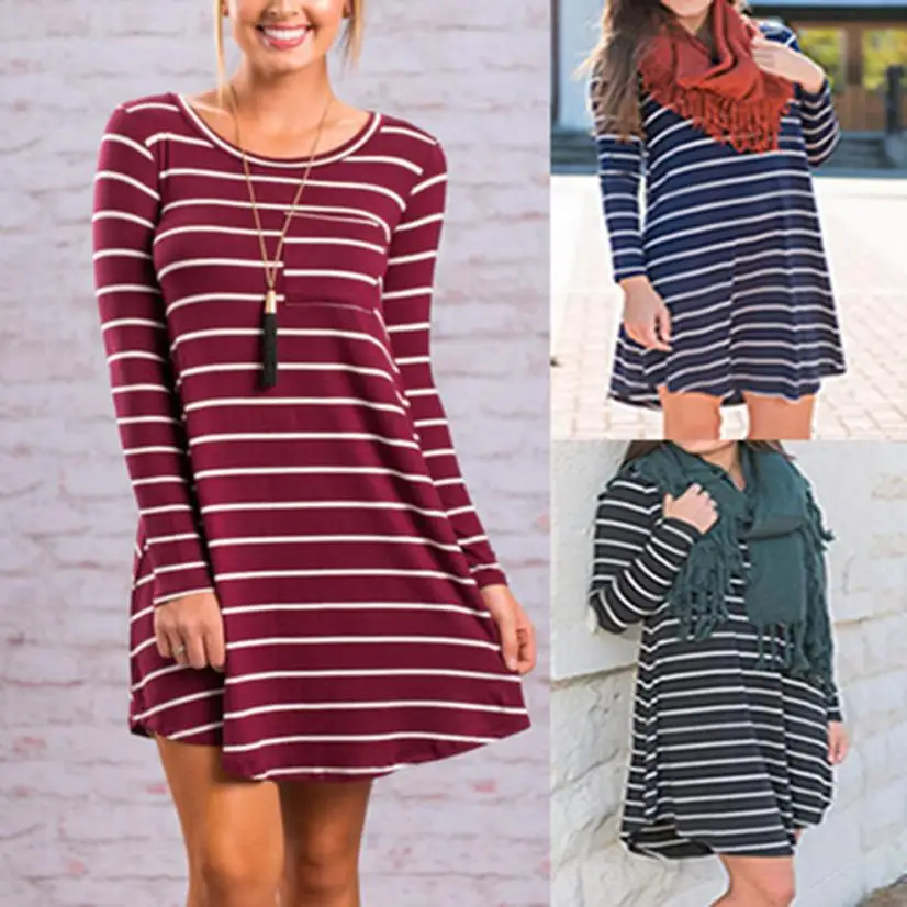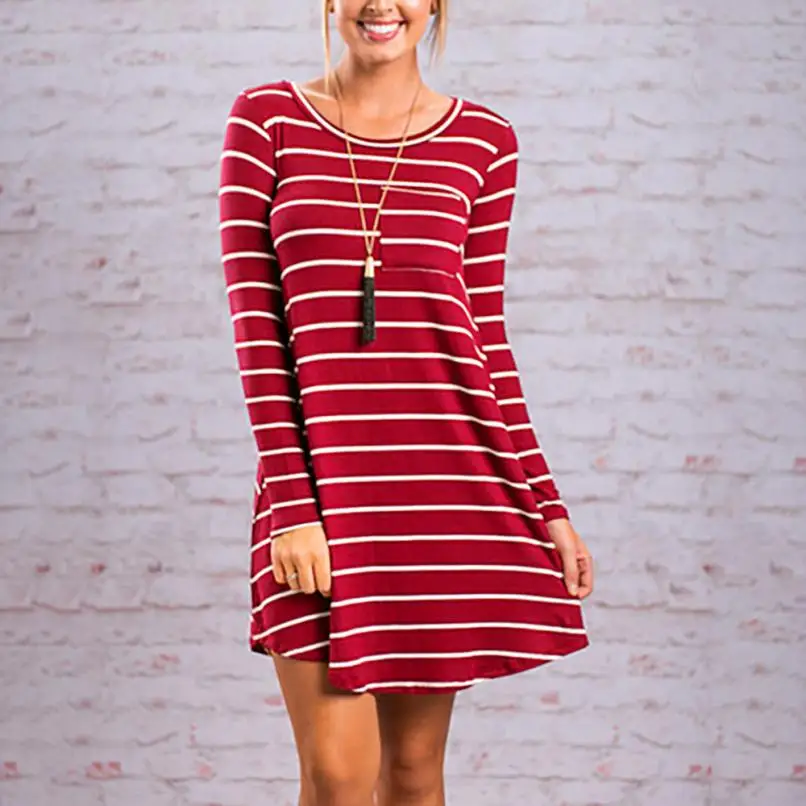 New KANCOOLD Dress Women's Autumn Fashion Long Sleeve O-Neck Striped Pocket Dress Casual fashion Dress | KANCOOLD Dress Women Ladies Floral Printing Long Sleevel Empire Dress O-Neck Casual Mini Swing Dress women 2018AUG6